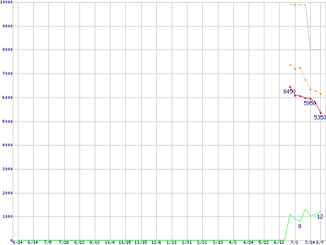 | HTS543216L9A300 (160GB,8MB)の価格推移 | | | (2007年5月24日~2008年8月7日) |