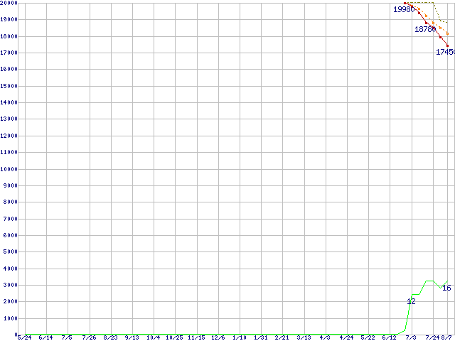 | WD1001FALS (1TB,32MB)の価格推移 | | | (2007年5月24日~2008年8月7日) |