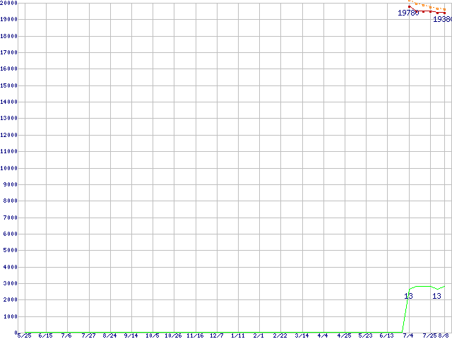 | Phenom X4 9150e (1.8GHz,L2 512KB×4,L3 2MB)の価格推移 | | | (2007年5月25日~2008年8月8日) |