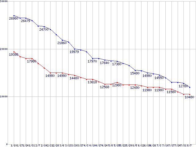 WD Caviar Black (7200rpm,3Gb/s)の最安値推移