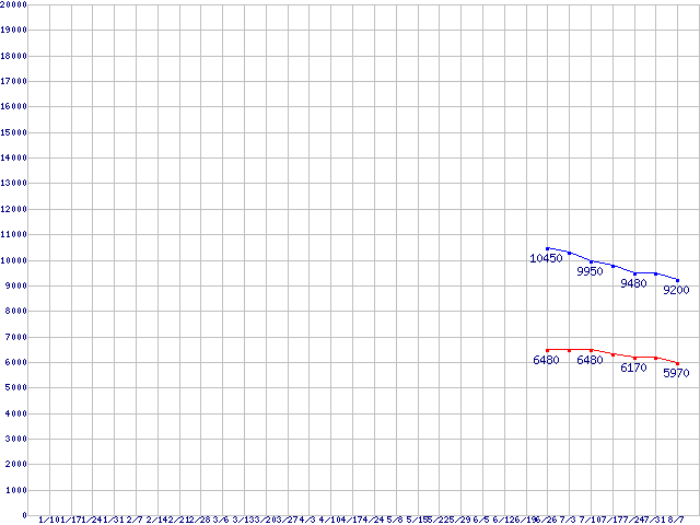 WD Scorpio Black (7200rpm,3Gb/s,2.5インチ)の最安値推移