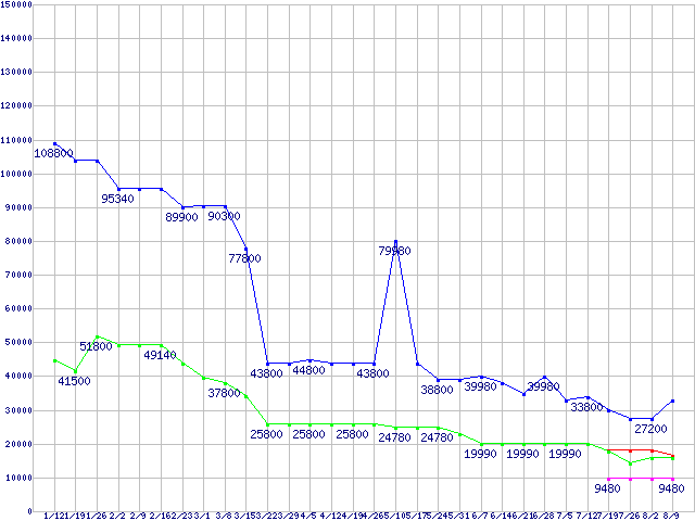 PC2-6400(DDR2-800) DDR2 SDRAM DIMMの最安値推移