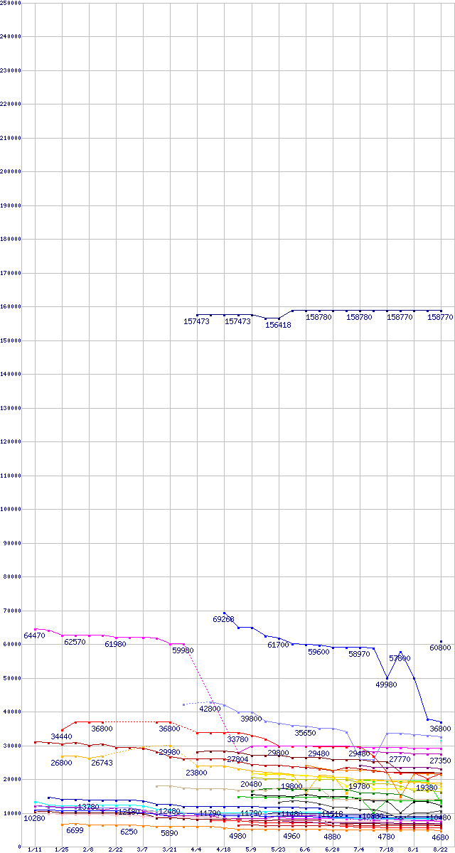 | CPU主要製品の最安値推移 | | | (2008年1月11日~2008年8月22日) |