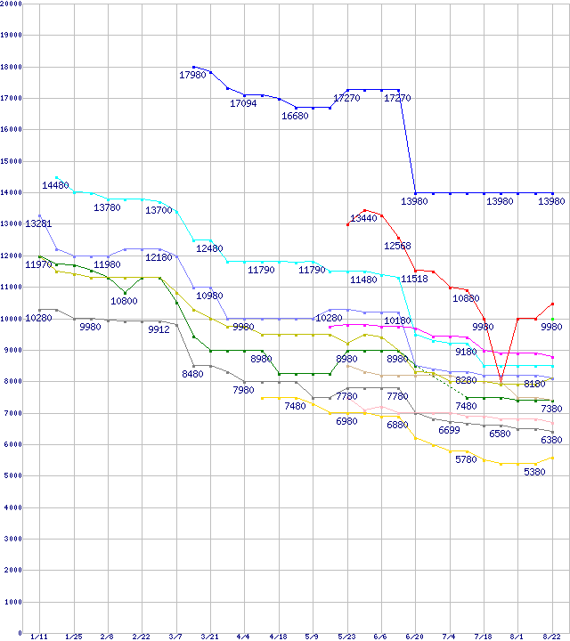 ※製品名をクリックすると個別のグラフを表示します ※点線部は販売店が確認できなかった、または調査データがないことを示します |