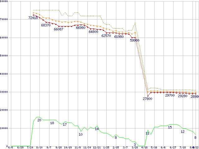 | Core 2 Quad Q6700 (2.66GHz,L2 4MB×2)の価格推移 | | | (2007年6月8日~2008年8月22日) |