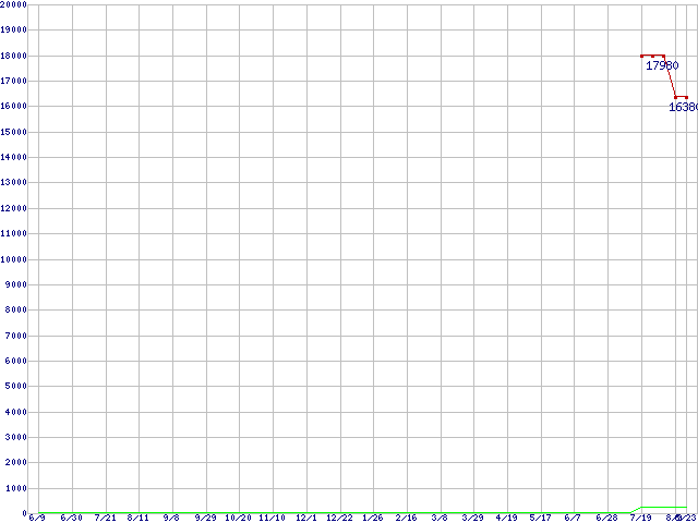 | PC3-12800 2GBの価格推移 | | | (2007年6月9日~2008年8月23日) |