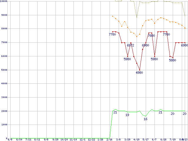 PC2-6400(DDR2-800) DDR2 SDRAM DIMMの最安値推移