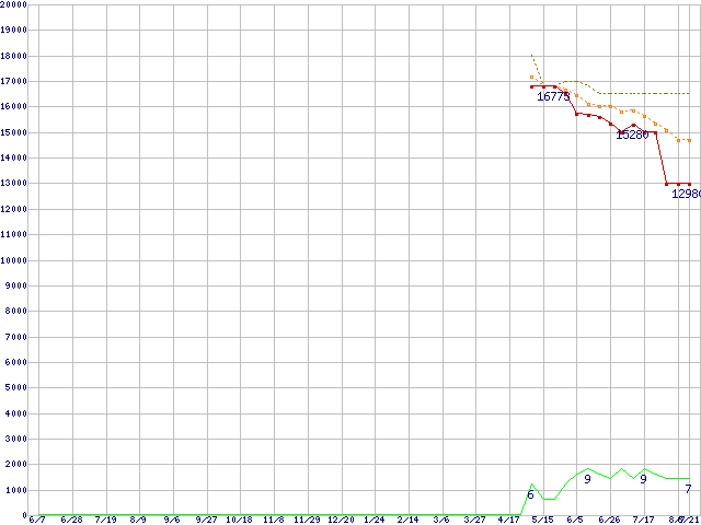 | HD103UI (1TB,32MB)の価格推移 | | | (2007年6月7日~2008年8月21日) |