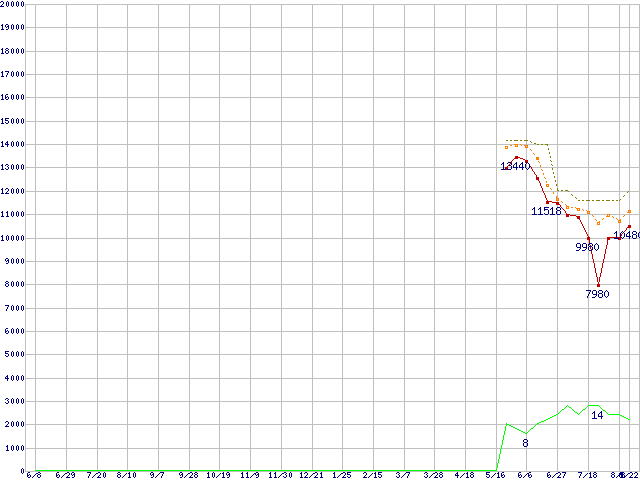 | Athlon X2 5600 (2.9GHz,L2 512KB×2)の価格推移 | | | (2007年6月8日~2008年8月22日) |