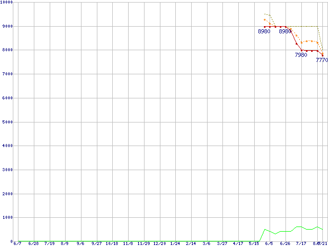 | HD642JI (640GB,16MB)の価格推移 | | | (2007年6月7日~2008年8月21日) |