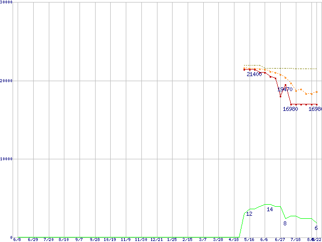 | Phenom X4 9100e (1.8GHz,L2 512KB×4,L3 2MB)の価格推移 | | | (2007年6月8日~2008年8月22日) |