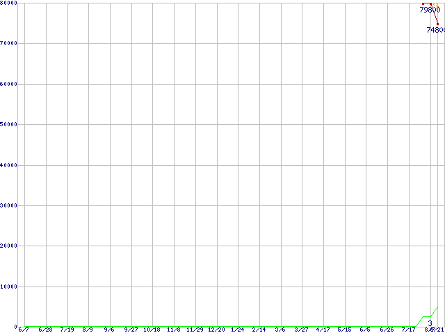 ※このグラフは過去のデータも税率5%相当に調整した税込み相当額のグラフです。 税率変更や、総額表示方式導入(2004年4月)の影響は除いています。 | | | ●凡例 | 最安値 (点線部は販売店未確認 または未調査) | 平均値 | 最高値 | ショップ数 |