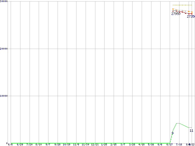 | Phenom X4 9950 Black Edition (2.6GHz,L2 512KB×4,L3 2MB)の価格推移 | | | (2007年6月8日~2008年8月22日) |