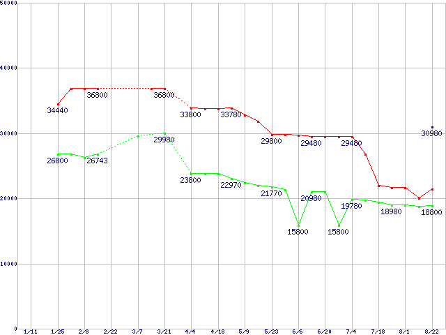 LGA775 (FSB 1066MHz,Dual Core,TDP 65W)の最安値推移
