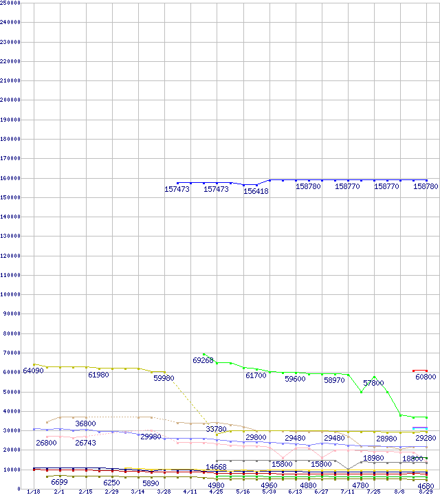 | Intel系CPUの最安値推移 | | | (2008年1月18日~2008年8月29日) |