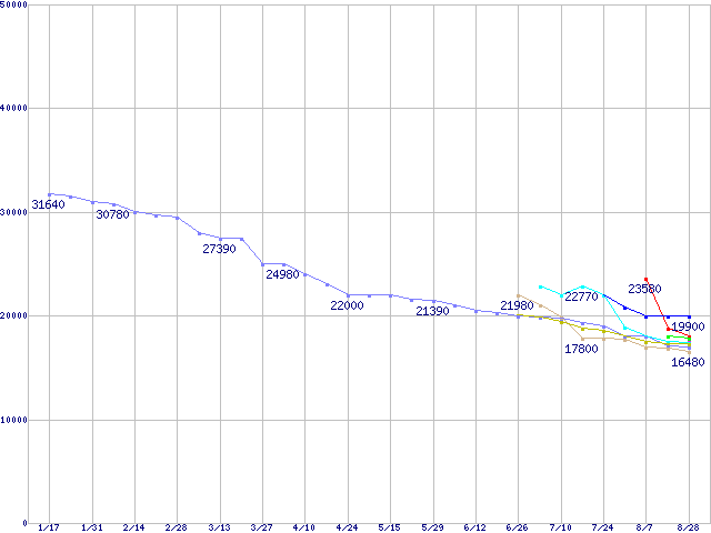 HDD/SSD主要製品(最安値2万円以上)の最安値推移
