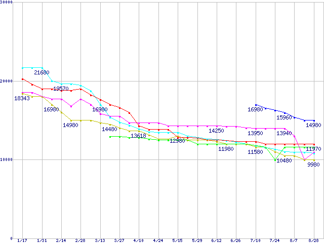 ※点線部は販売店が確認できなかった、または調査データがないことを示します