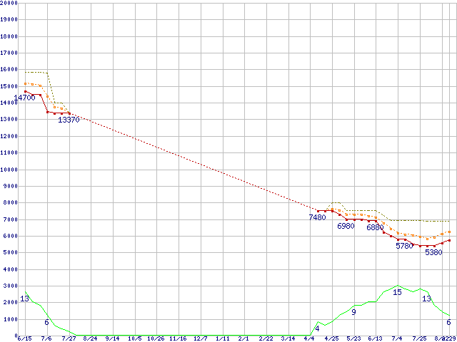| Athlon X2 4600 (2.4GHz,L2 512KB×2)の価格推移 | | | (2007年6月15日~2008年8月29日) |