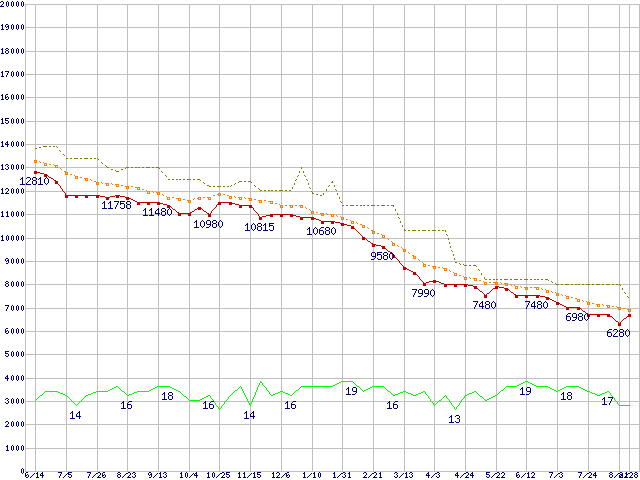 | WD5000AAKS (500GB)の価格推移 | | | (2007年6月14日~2008年8月28日) |