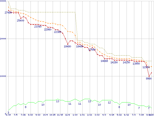| WD7500AAKS (750GB)の価格推移 | | | (2007年6月14日~2008年8月28日) |