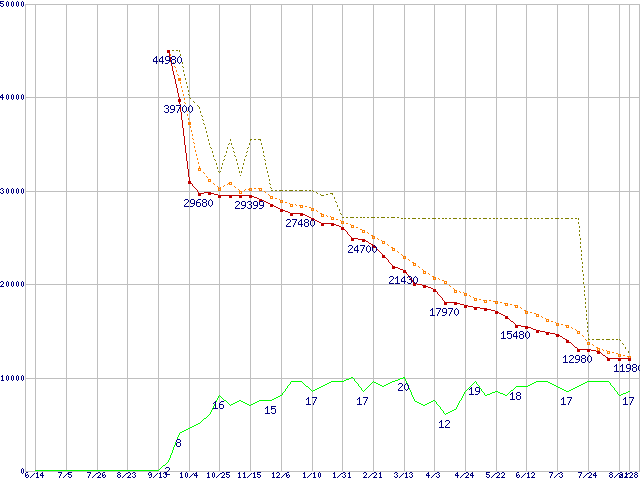 | WD10EACS (1TB,16MB)の価格推移 | | | (2007年6月14日~2008年8月28日) |