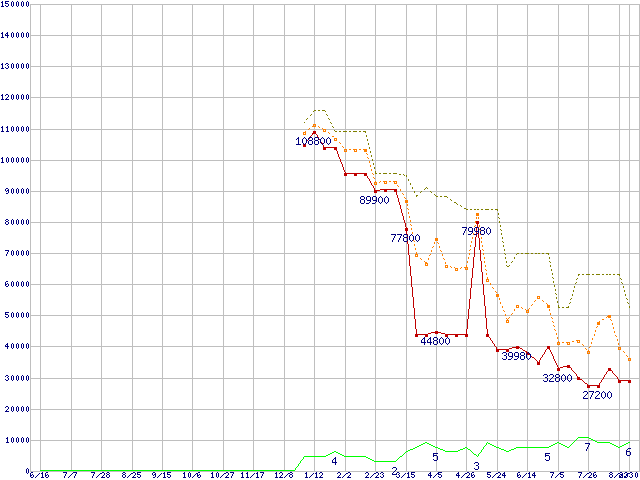 メモリ主要製品(最安値1万円以上)の最安値推移