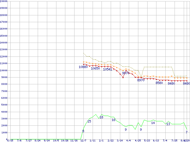 | Pentium Dual-Core E2200 (2.2GHz)の価格推移 | | | (2007年6月15日~2008年8月29日) |