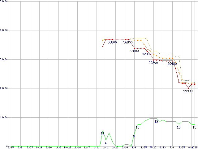 | Core 2 Duo E8500 (3.16GHz,L2 6MB)の価格推移 | | | (2007年6月15日~2008年8月29日) |