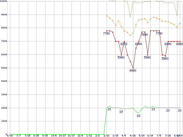 PC2-6400(DDR2-800) DDR2 SDRAM DIMMの最安値推移