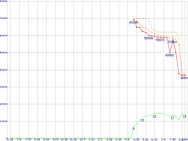 | Core 2 Quad Q9550 (2.83GHz,L2 6MB×2)の価格推移 | | | (2007年6月15日~2008年8月29日) |