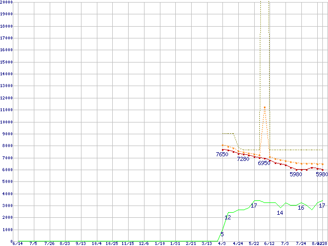 | ST3320613AS (320GB,16MB)の価格推移 | | | (2007年6月14日~2008年8月28日) |