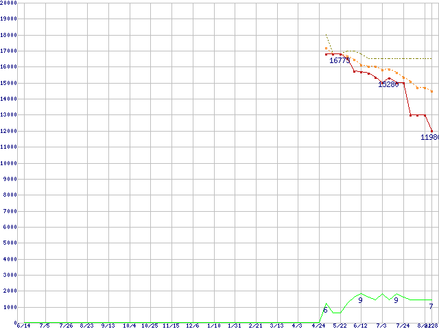 | HD103UI (1TB,32MB)の価格推移 | | | (2007年6月14日~2008年8月28日) |