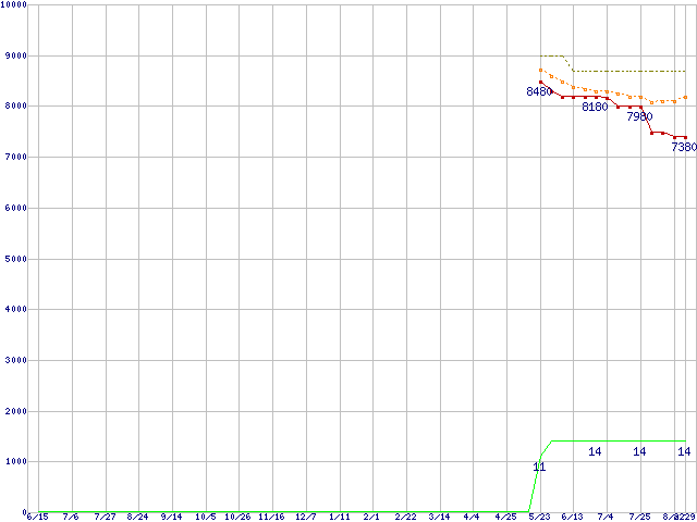 | Athlon X2 4450e (2.3GHz,L2 512KB×2)の価格推移 | | | (2007年6月15日~2008年8月29日) |