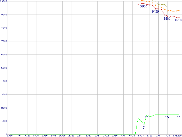| Athlon X2 4850e (2.5GHz,L2 512KB×2)の価格推移 | | | (2007年6月15日~2008年8月29日) |