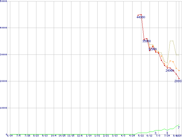 | FTM30GK25H (30GB,MLC)の価格推移 | | | (2007年6月14日~2008年8月28日) |