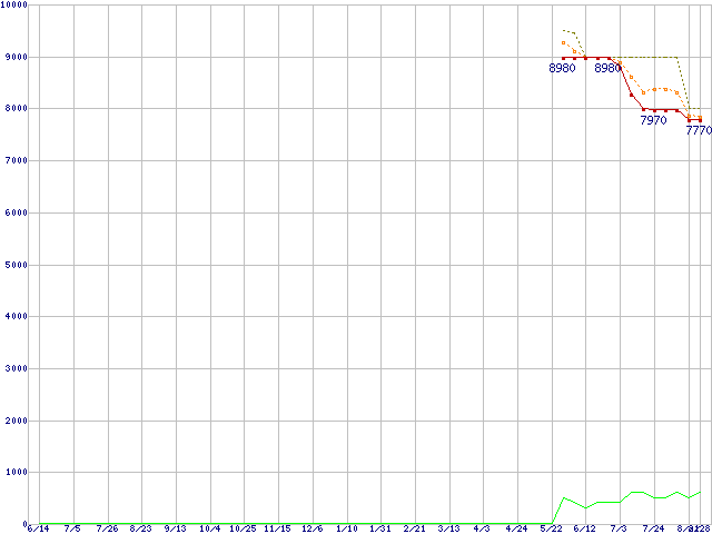| HD642JI (640GB,16MB)の価格推移 | | | (2007年6月14日~2008年8月28日) |
