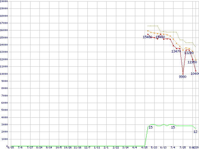 | Phenom X3 8450 (2.1GHz,L2 512KB×3,L3 2MB)の価格推移 | | | (2007年6月15日~2008年8月29日) |