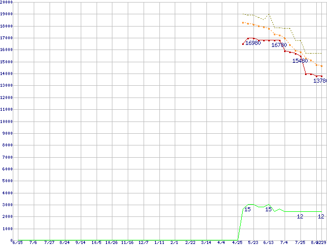 | Phenom X3 8650 (2.3GHz,L2 512KB×3,L3 2MB)の価格推移 | | | (2007年6月15日~2008年8月29日) |