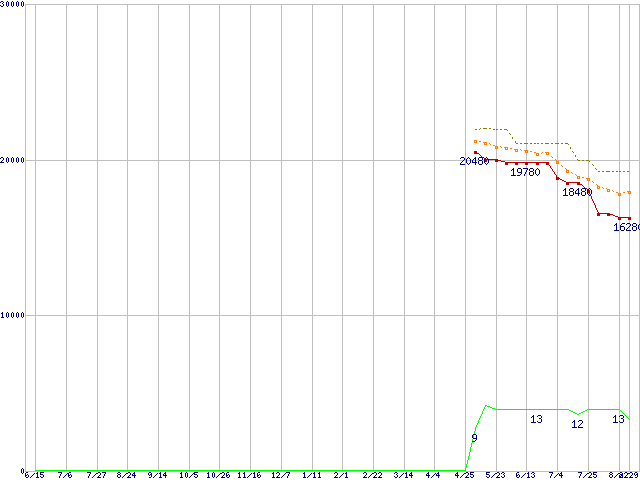 | Phenom X3 8750 (2.4GHz,L2 512KB×3,L3 2MB)の価格推移 | | | (2007年6月15日~2008年8月29日) |