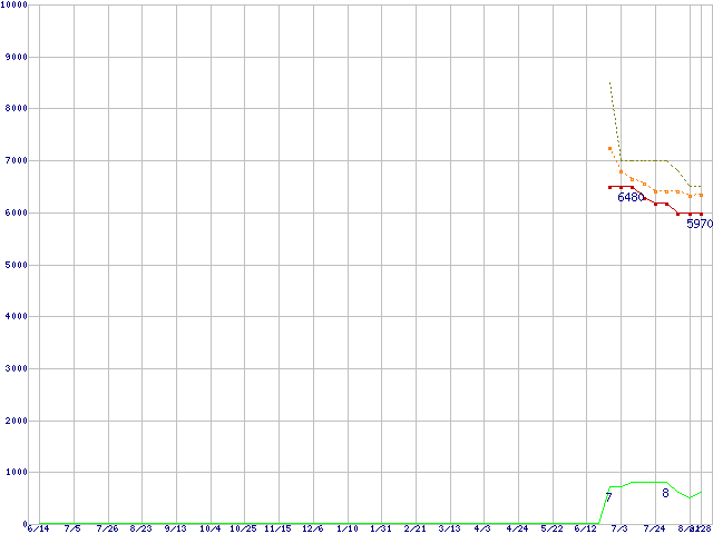 | WD1600BEVT (160GB,8MB)の価格推移 | | | (2007年6月14日~2008年8月28日) |