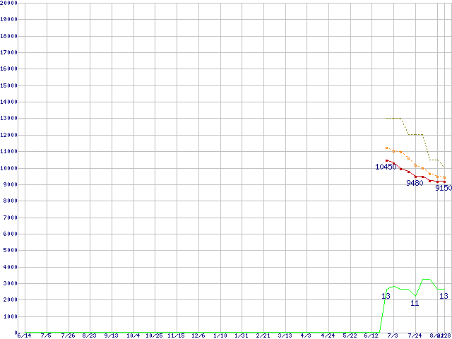 | WD3200BEVT (320GB,8MB)の価格推移 | | | (2007年6月14日~2008年8月28日) |