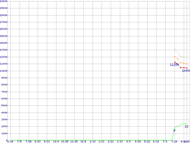 | WD1600BEKT (160GB,16MB)の価格推移 | | | (2007年6月14日~2008年8月28日) |