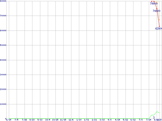 | OCZSSD2-1C128G (128GB,MLC)の価格推移 | | | (2007年6月14日~2008年8月28日) |
