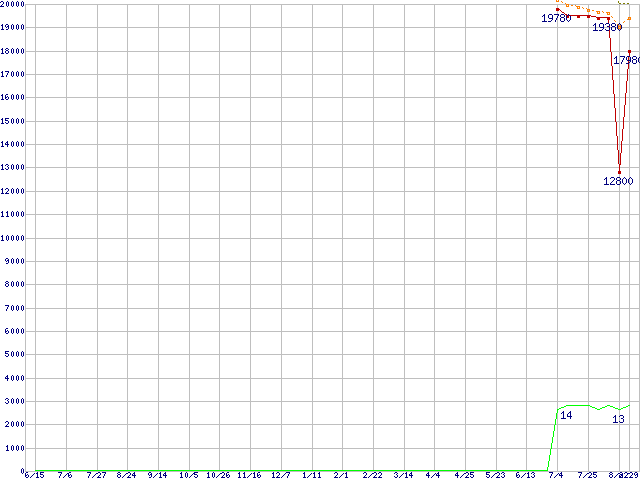 | Phenom X4 9150e (1.8GHz,L2 512KB×4,L3 2MB)の価格推移 | | | (2007年6月15日~2008年8月29日) |