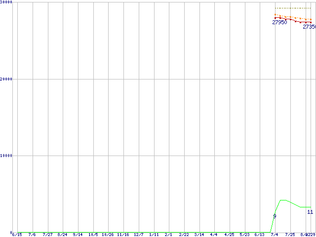 | Phenom X4 9950 Black Edition (2.6GHz,L2 512KB×4,L3 2MB)の価格推移 | | | (2007年6月15日~2008年8月29日) |