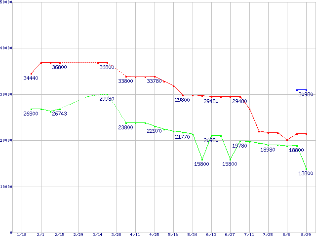 LGA775 (FSB 1066MHz,Dual Core,TDP 65W)の最安値推移