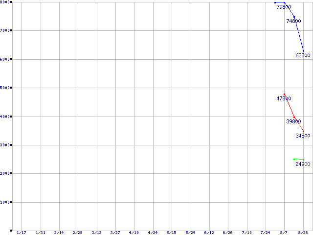 | OCZ Core Series SATA II 2.5" SSD (SSD,3Gb/s,2.5インチ)の最安値推移 | | | (2008年1月17日~2008年8月28日) |