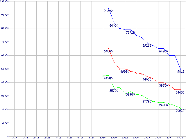 | MasterDrive MX SATA-II 25 (SSD,1.5Gb/s,2.5インチ)の最安値推移 | | | (2008年1月17日~2008年8月28日) |