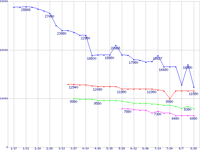 Spinpoint F1 (7200rpm,3Gb/s)の最安値推移