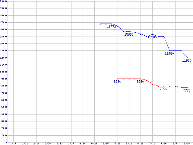Spinpoint F1 (7200rpm,3Gb/s)の最安値推移